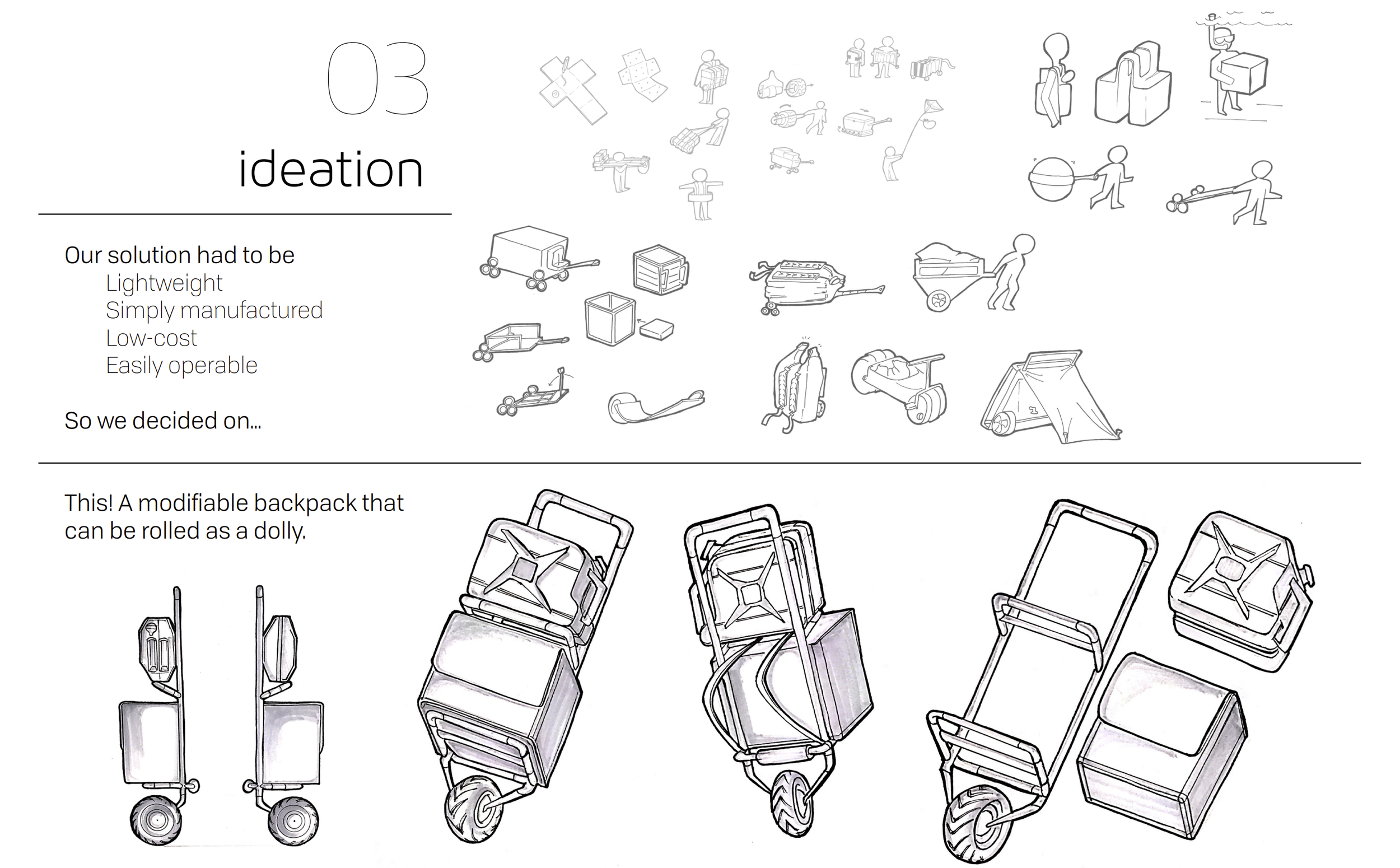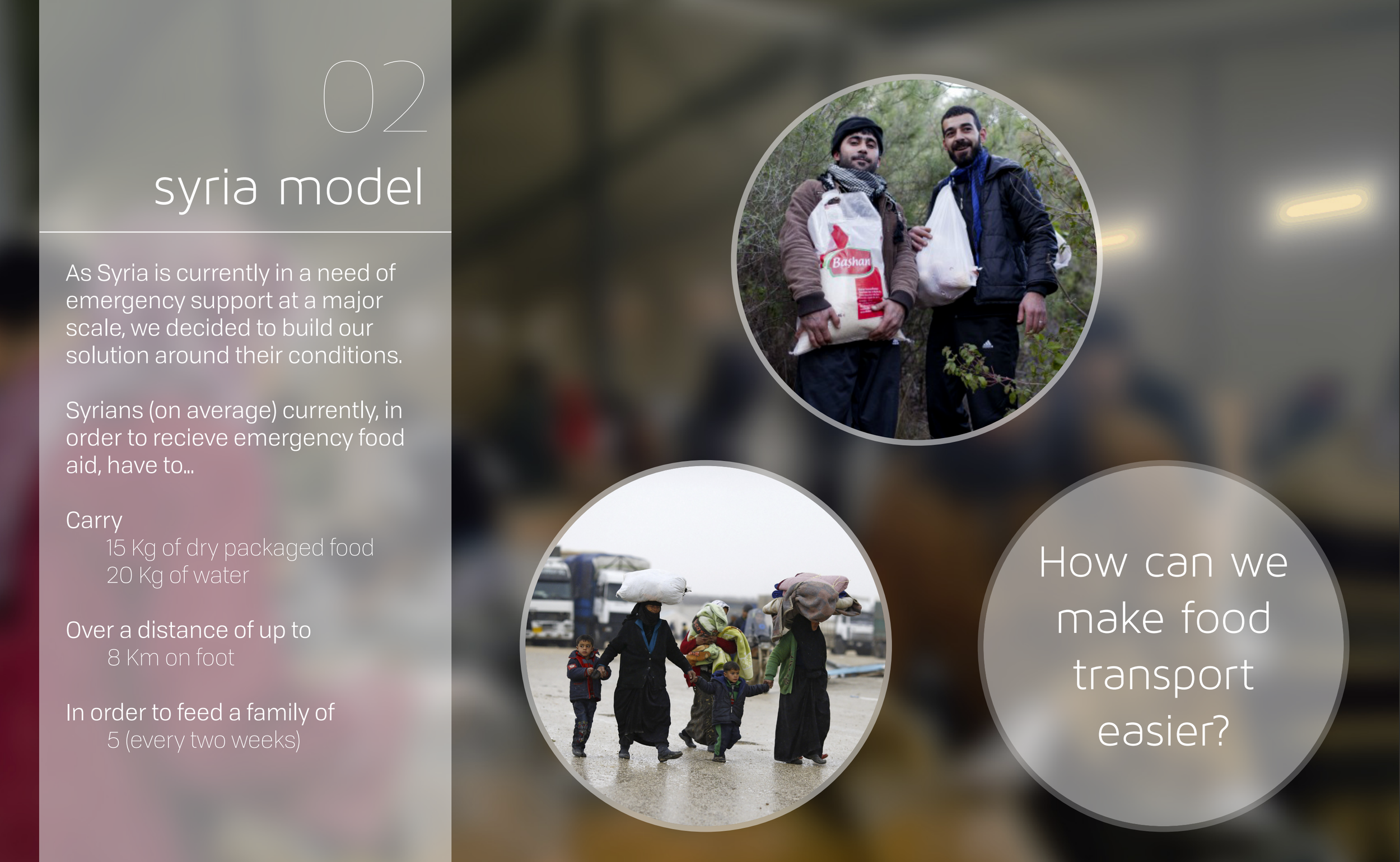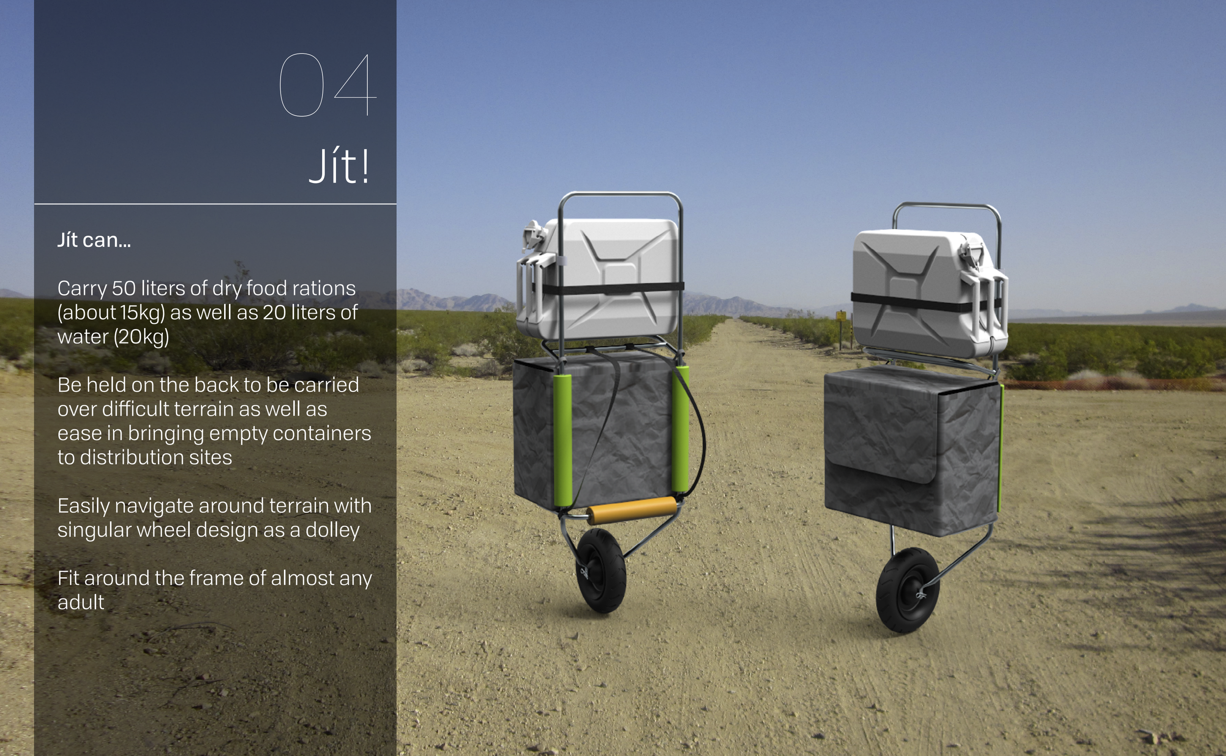 A Médecins Sans Frontières/ Doctors Without Borders concept design for a cost-effective mass distribution as a personal transportation product of water and food aid in Syria.