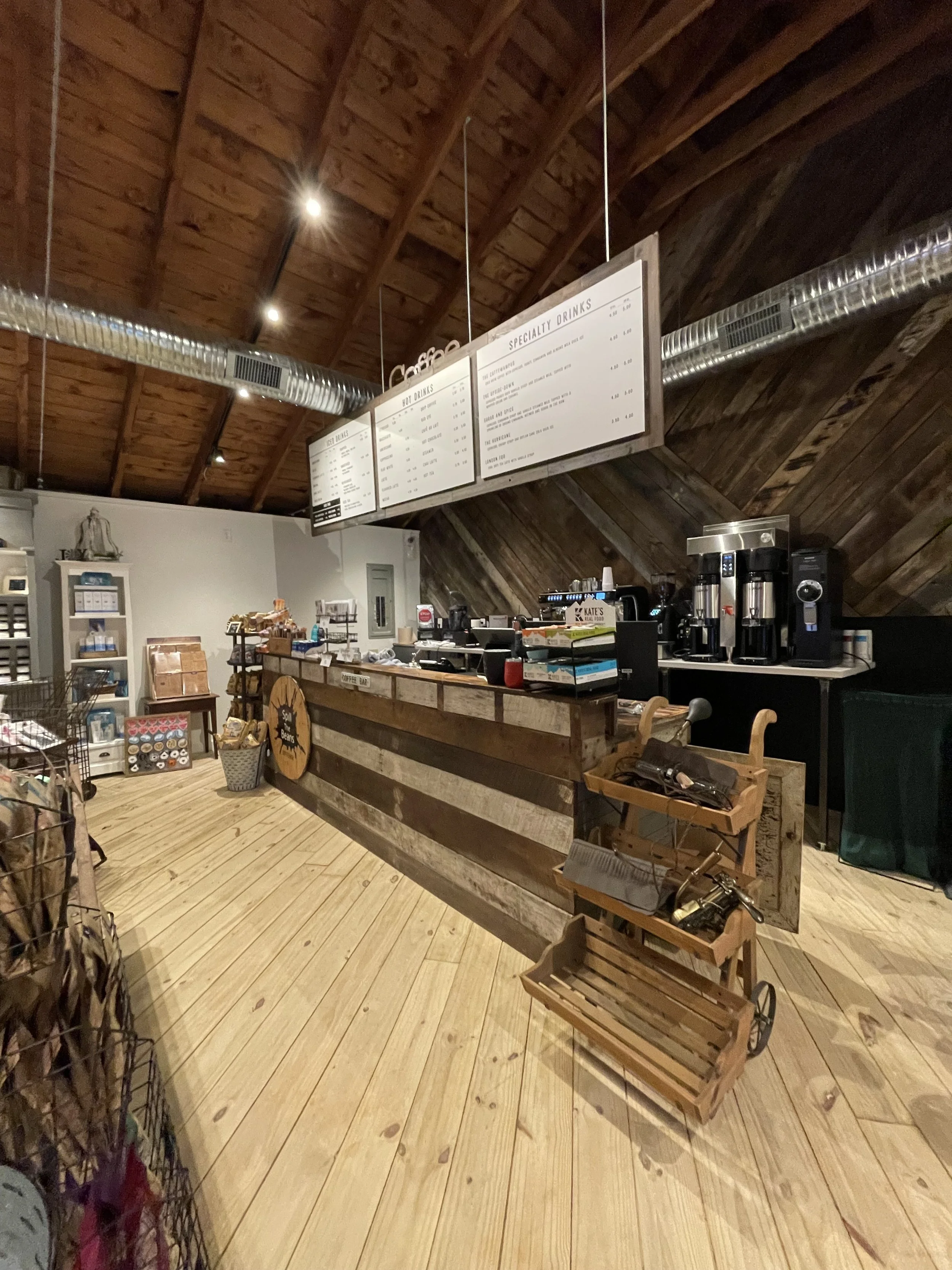 Located in Greensboro, North Carolina. Spill The Beans is a coffee bar inside an upfitted gas station that was turned into a general country store. This is a back of the bar design, where an equipment schedule floor plan was created to design the custom counter build out. This commercial grade counter is built with steel and solid surface countertop. In addition, a menu was designed, built, and installed to complete the coffee bar.